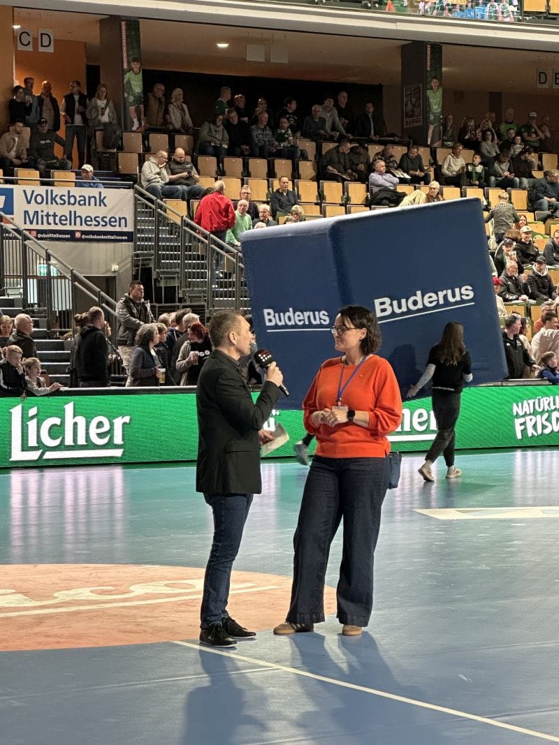 Ein spannendes Spiel konnten die Zuschauer:innen der HSG Wetzlar m 2.4. in der Buderus-Arena erleben. Ehrenamtliche Mitarbeitende der Tafel Wetzlar sammelten die gespendeten Pfandbecher der