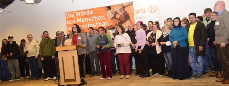 Grußworte von Staatsministerin Hofmann (Ministerium für Arbeit, Integration, Jugend und Soziales), Oberbürgermeister Wagner (Stadt Wetzlar), Vorstandsvoritzender der Sparksse Wetzlar Stephan Hofmann (für alle Spender:innen), Erich Linder (Tafel Deutschland/Tafel Hessen) und Christoph Schaaf (Kirchenkreis an Lahn und Dill) drückten die Motivation der Unterstützer:innen die Dankbarkeit für das Engagement der Mitarbeitenden aus, die mit „Standing ovations“ bedankt wurde.