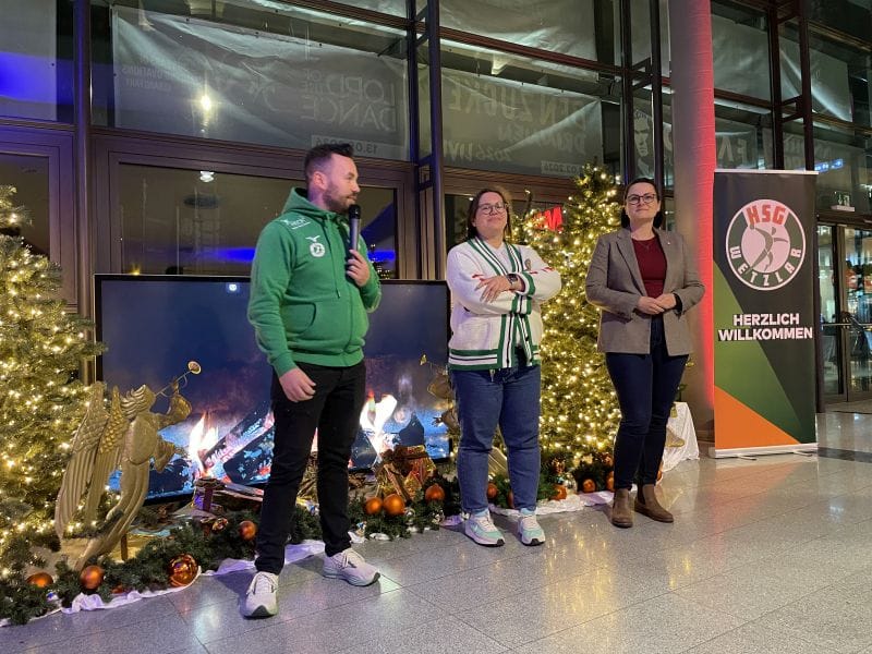 Meike Theermann von der Buderus-Arena und Tim Talhoff von der HSG zusammen mit Susanne Ochs von der Tafel Wetzlar haben diese tolle Aktion sich ausgedacht: