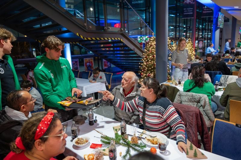 „Vielen DANK – das ist so schön hier“ – „Sehr leckeres Essen“ – „So eine schöne Stimmung hier“ So haben sich Tafelkund:innen über die Einladung der Buderusarena und der HSG Wetzlar zum Weihnachtsessen am 17.12. gefreut.
