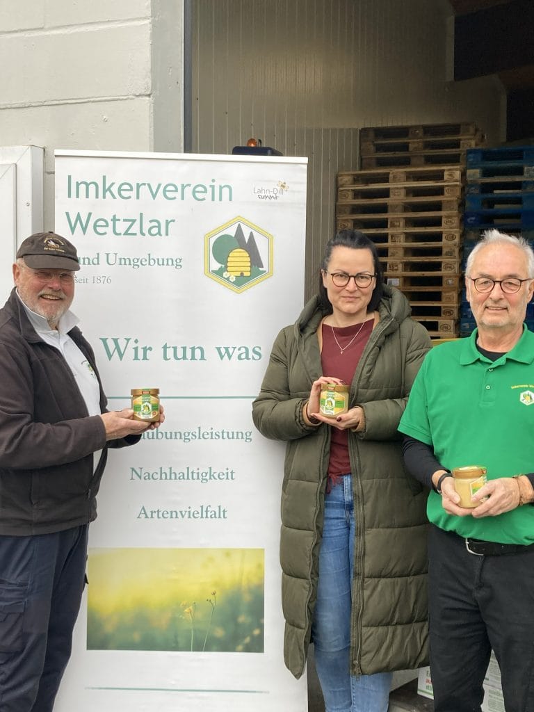 Vielen Dank an die Mitglieder des Imkervereins Wetzlar e.V. für die Honig-Spende kurz vor Weihnachten. Für die 72 Gläser haben viele Bienen viele Kilometer zurück gelegt – wir wissen da sehr zu schätzen. Danke vor allem auch an den Vorstand, der für jedes gespendete Glas Honig 2 Euro an uns gespendet hat. Die Herrn Thomas Poetsch und Eberhard Schmauch kamen extra zu uns ins Lager gefahren und haben die Spender persönlich abgeliefert. Wir werden den Honig in den nächsten Tagen an unsere Kund:innen weitergeben. TOLLE Aktion!