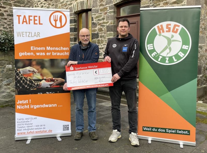 An diesem Mittwoch übergab die HSG Wetzlar den symbolischen Spendenscheck an Diakon Christof Mayer, dem Geschäftsführer der Tafel Wetzlar. „Wir wissen, wie wichtig die Arbeit der Tafeln ist und möchten mit dieser Spende einen Beitrag leisten, um die wertvolle Arbeit für Menschen in schwierigen Lebenssituationen zu unterstützen“, erklärte Arne Wohlfarth, Geschäftsleiter bei der HSG Wetzlar. „Gerade in Zeiten, in denen zunehmend mehr Menschen auf diese Unterstützung angewiesen sind, ist es uns ein Anliegen, soziale Verantwortung zu übernehmen, zumal es für die Tafel Wetzlar auch immer herausfordernder wird, der ständig steigenden Nachfrage gerecht zu werden“, ergänzte Wohlfarth.