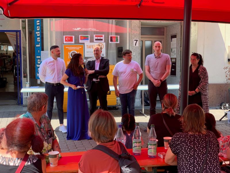 Nach 3 Jahren konnte sie endlich wieder starten: die lange Tafel. Gestaltet von der FEG und dem Team des Tafelladens Bahnhofstraße der Tafel Wetzlar konnten an unzähligen Tischen Menschen Platz nehmen, zuhören, essen, trinken, sich utnerhalten und auch weiterziehen. Eine lange Tafel, die zum verweilen einlädt. Dass die Lange Tafel wieder mal ein wunderbares Bürger:innen-Fest für ALLE war ist nicht nur dem großen Ehrenamtsteam der FEG, dem Hauptsponsor des Essens Hartmut Moos und all den anderen Beteiligten zu verdanken, sondern eben ALLEN, die sich einladen ließen und dabei waren.