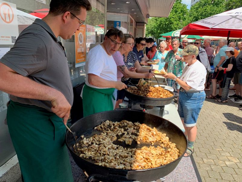 450 Gäste, unterschiedlichste Musik, sehr leckere Essensvariationen aus fünf Nationen, Gottesdienst mit der Geschichte vom verlorenen Sohn, Interviews mit Gästen der VHS, der Stadtbibliothek, dem Sponsor Bäckerei Moos, dem Cafe Simici, Kaffee und Kuchen und ganz viel Begegnungen unterschiedlichster Menschen – das war die lange Tafel 2023
